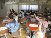 数の聞き方を覚えようというめあてで学習しました。How many ?で漢字の画数を使った問題に取り組みながら、英語での数についての表現を学びました。