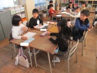 三か所に分かれて読み聞かせを行いました。先生の読み聞かせをとても真剣に聞いていま...