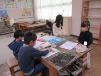 1組は道徳。グループで考えを共有しました。2組は図工。下書きに沿って、紙版画の...