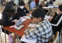 調理実習に向けて手順の確認をしました。厚揚げと野菜のチャンプルの材料の確認、ゆで...
