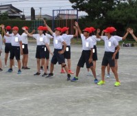 5・6年生がそろって、運動場で表現の練習をしました。入退場の練習や位置取りを確認...