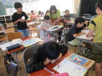 5・6年生がそろって、運動場で表現の練習をしました。入退場の練習や位置取りを確認...