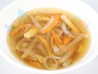 今日の給食は、ご飯、牛乳、とり肉の揚げてり、だいこんのそぼろ煮、れんこんのごま...