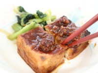 今日の給食は、ご飯、牛乳、絹厚揚げの肉みそがけ、こまつなのおひたし、みぞれ汁で...