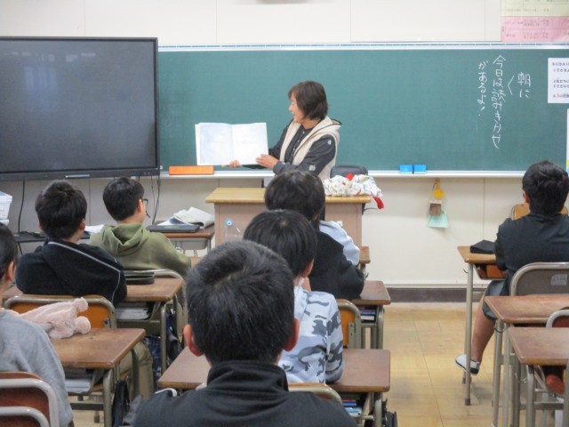 読書の秋です。朝の時間に読み聞かせをしていただきました。