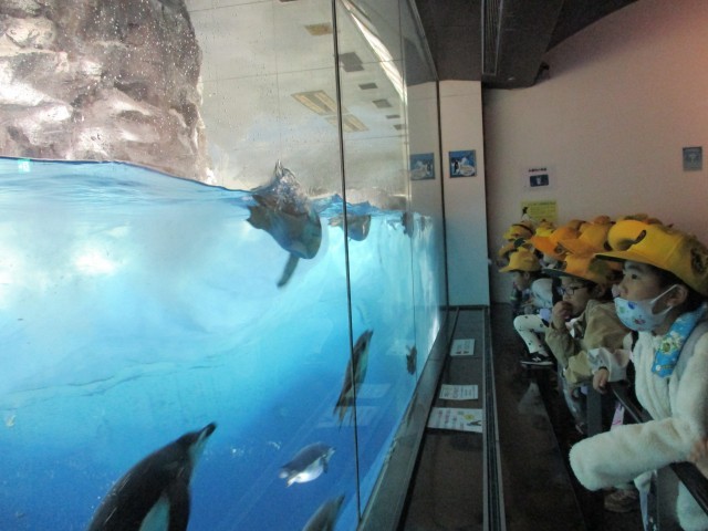校外学習で名古屋港水族館に行ってきました。イワシのトルネードを見て、「キラキラ光っていて、きれい!」、ペンギンの泳ぐ姿を見て「速いね。かわいいね。」など、水族館の生き物を見て、歓声をあげていました。たくさんのことを学べた校外学習になりました。