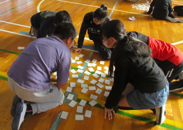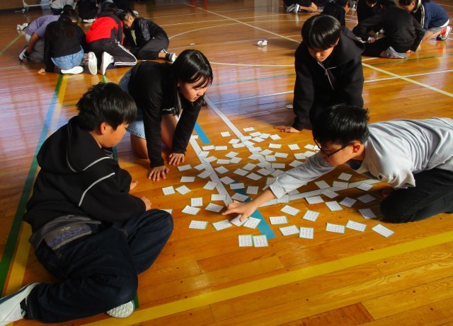 百人一首をやりました。覚えてきた子は、上の句を読んだだけで取っていました。すばらしいです。そして、上の句を聞いた後、下の句を聞き逃さないようにとても集中している様子も見られました。楽しそうにやっていました。