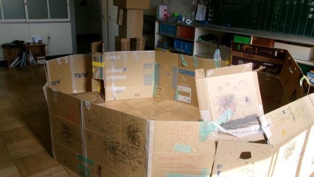 わかくさの教室にひみつ基地とロボットが登場しました。