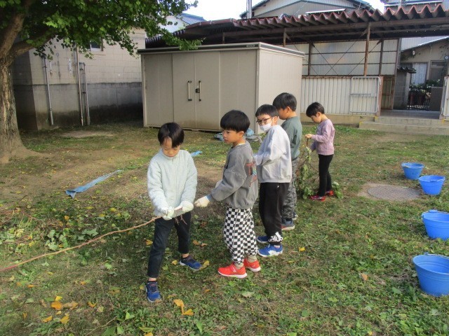 サツマイモのつるを使って綱引きも楽しむことができました♪