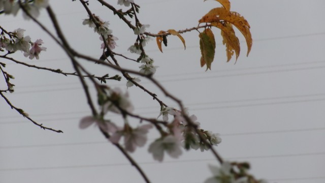 現在は、一本の木で、桜の花と桜の紅葉が楽しめる状況です。