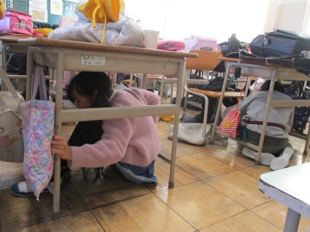 地震を想定した避難訓練であるため、逃げ道を確保するためにすばやく窓を開ける児童、帰りの準備の途中でも机の下に避難する児童、廊下でもシェイクアウトの姿勢をとり身を守る児童など、自分たちで考えて避難訓練を行うことができました。瀬部っ子のすばらしい姿でした。