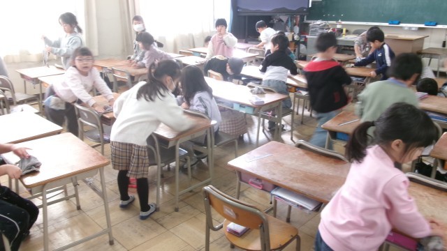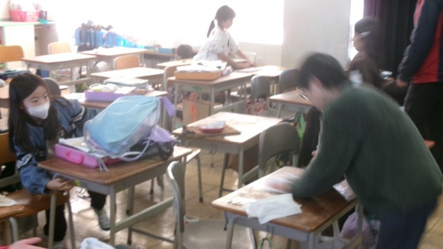 4月から使ってきた自分の机やいすを一生懸命、ぞうきんで拭く姿が印象的でした。