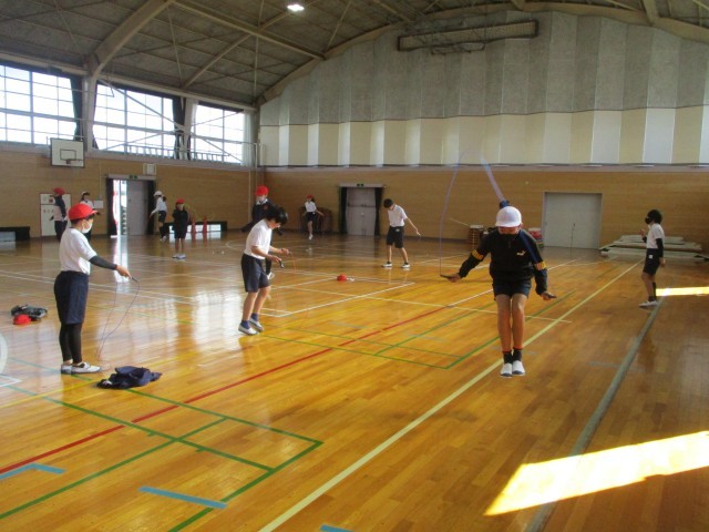 体育の授業でなわとびを練習しています。1月中旬から、なわとび週間が始まります。それに向けて、リズムなわとびの練習にはげんでいます。