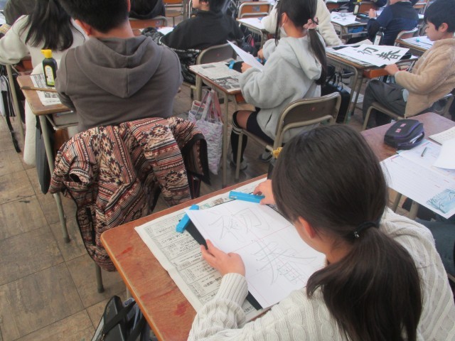 今日は書初めをしました。丁寧にお手本を見ながら書きました。どのような作品ができるのか楽しみです。
