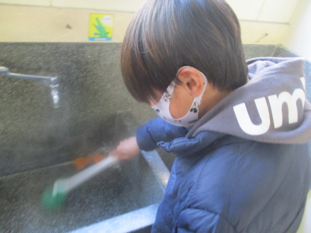 掃除の時間に担当場所を一生懸命掃除できました。高学年になってあと少しで6年生、お手本になることができています。