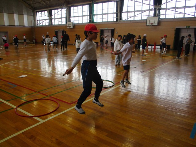 なわとび週間は、今日から30日までの2週間です。期間中の中間放課には、屋内運動場でなわとび検定を実施します。昨年度よりも上の級に合格できるよう、みんな頑張っています。