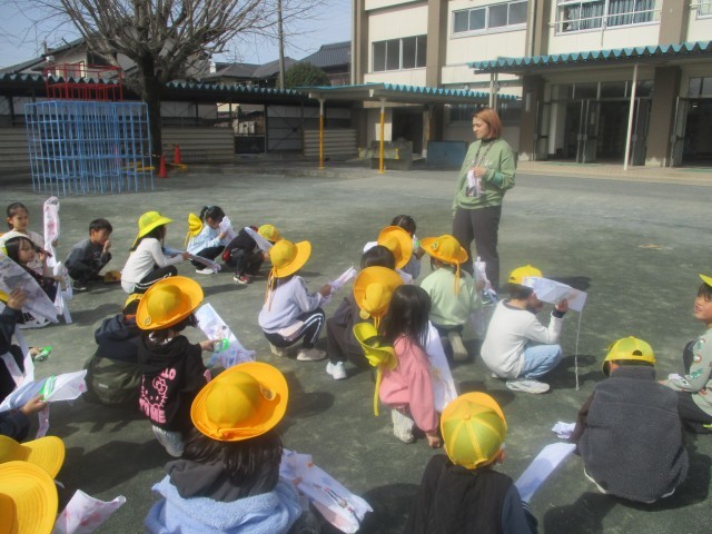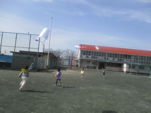 今日は生活科の時間にたこあげをしました。みんな上手にたこをあげることができました。