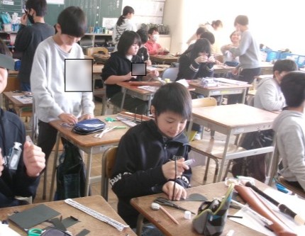 6年生を送る会に向けて、6年生も「何か」身に着けるものをつくっています。