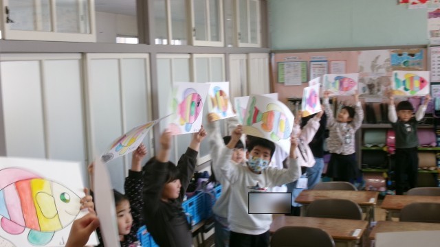 3月5日 1年生 スイミーすてきなお魚が完成