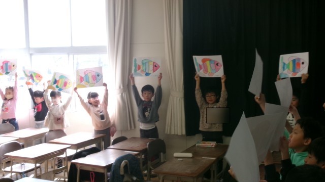 みんなでカラフルでかわいい魚を見せ合いました。