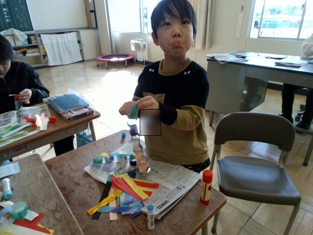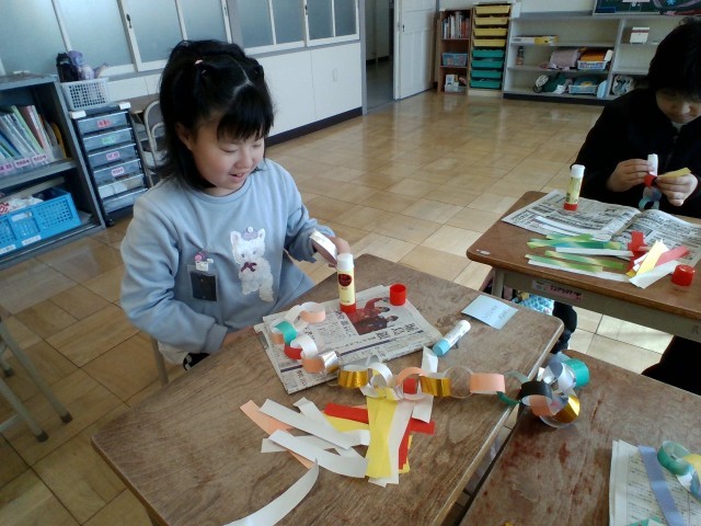 教室を装飾する輪飾りをつくりました♫