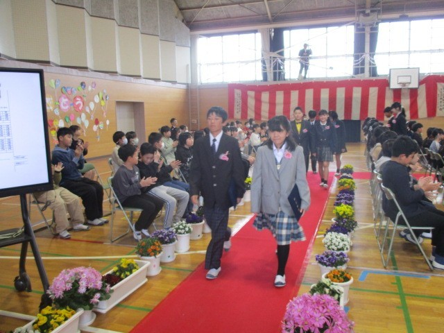 第79回卒業式を挙行したしました。6年生83名が学び舎を巣立っていきました。堂々とした姿で証書を受け取る姿、6年間の頑張りや思いが込められた呼びかけ、屋内運動場中に響き渡った歌声など、すばらしい卒業式となりました。卒業生のみなさん、これからみなさんの歩む道が輝かしいものとなることを祈っています。保護者の皆様や地域の方々、今日まで本校の教育活動にご理解と協力をいただき、誠にありがとうございました。