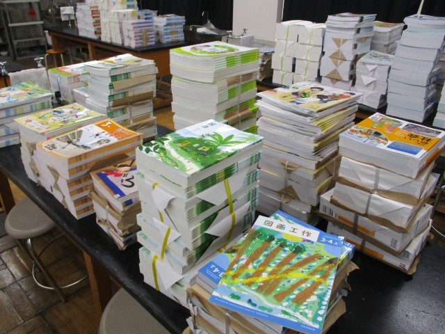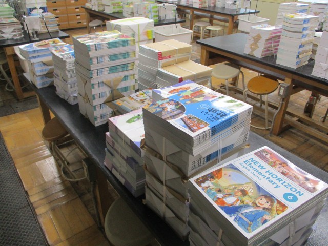 春休み、元気に過ごせていますか。春休みの学校では、新学期の準備が少しずつ始まっていきます。今日は、子どもたちが使う教科書が学校に届きました。