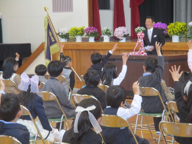 ちょっと緊張しながらも、校長先生の話に元気よく反応できました。返事もすばらしかったです。