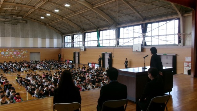 まずは、新しく瀬部小学校のみえた先生との対面式です。