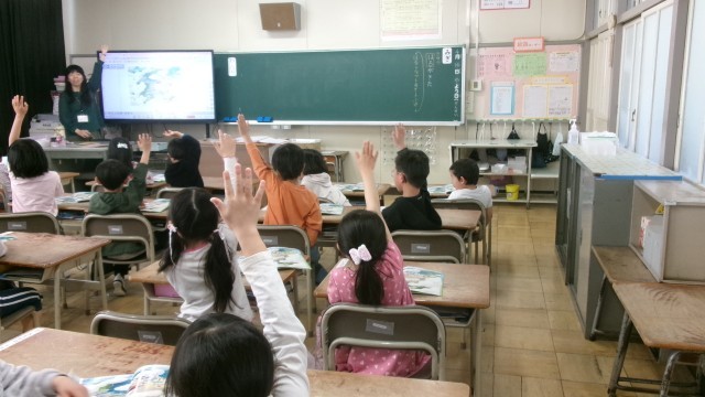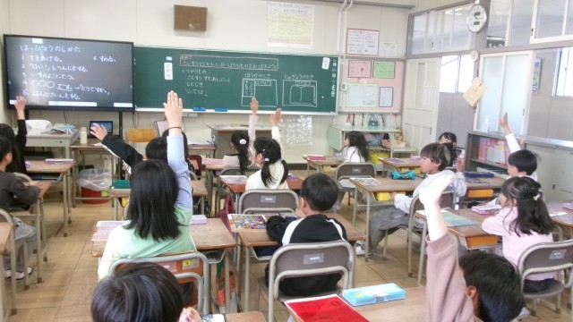 みんな一生懸命 手を挙げてがんばっています。