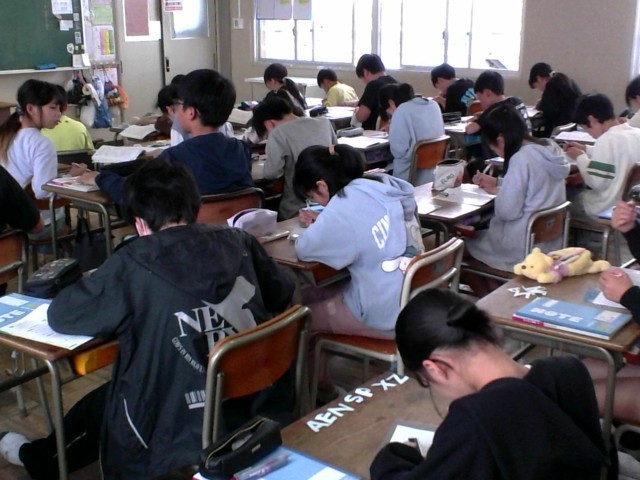 算数で、線対称の図形を描いたり、アルファベットの対称を調べました。