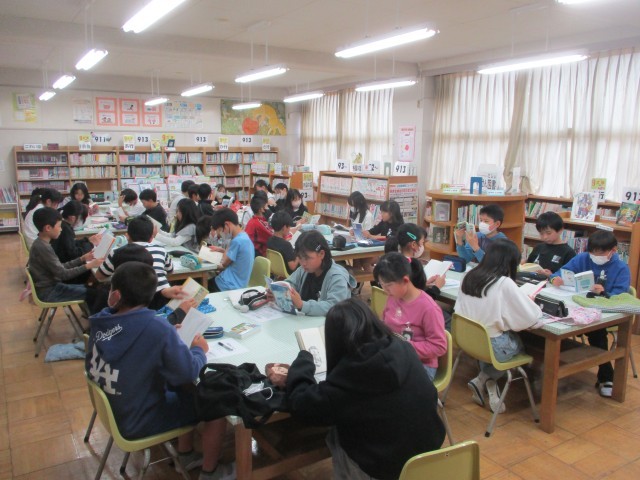 6年生になって初めて図書館を利用しました。本の分類や味見読書をしました。これから好きな本を見つけて、たくさん本に親しんでほしいと思います。