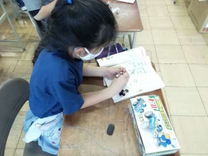 理科では、電池を使って豆電球がどうやったら明るくなるか確かめました。