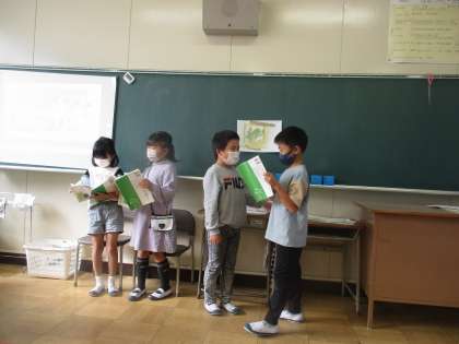 今日は「お手紙」の音読発表会を行いました。今日に向けて練習や準備をしてきました。みんなとても素晴らしい音読劇に大きな成長を感じました。この調子でもっといろいろな物語を好きになってほしいです。