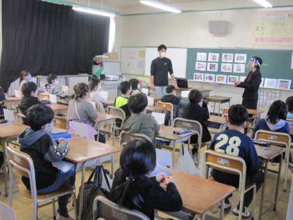 新しく見えたALTの先生と一緒に外国語活動をしました。