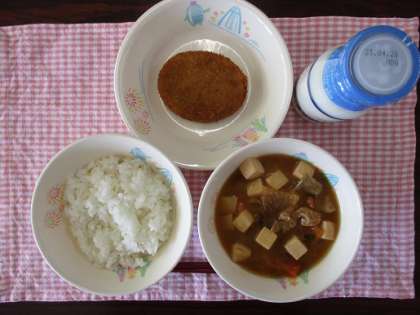 「ご飯・牛乳・ポテトコロッケ・呉汁」です。