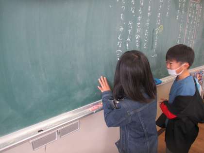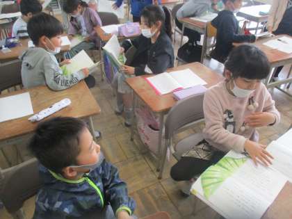 今日は「ふきのとう」第5ばめんを読み取りました。登場人物の心情や情景を考えました。表現できるような音読の仕方を考えました。