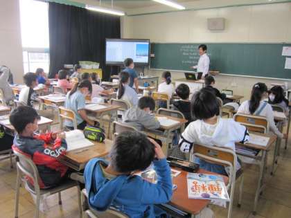 理科では、1日の気温の変化が天気によって違いがあるの考えました。