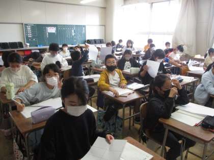下の写真は2組です。国語の授業です。物語の読み取りに入ります。