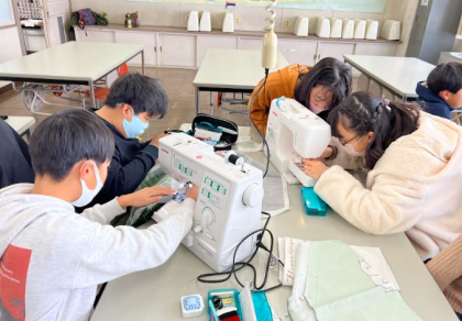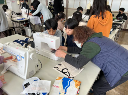 今日は家庭科の授業でミシンを使ってエプロンを作りました。