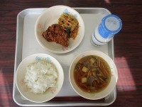 「ご飯・牛乳・ポテトコロッケ・けんちん汁・野菜ふりかけ」です。