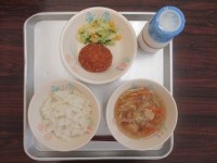 「麦ご飯・牛乳・てりどり・ブロッコリーのおかか和え・吉野汁」
