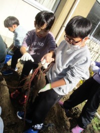 1学期に植えたさつまいもを掘りおこしました♪サツマイモのつるを使って綱引きも楽し...