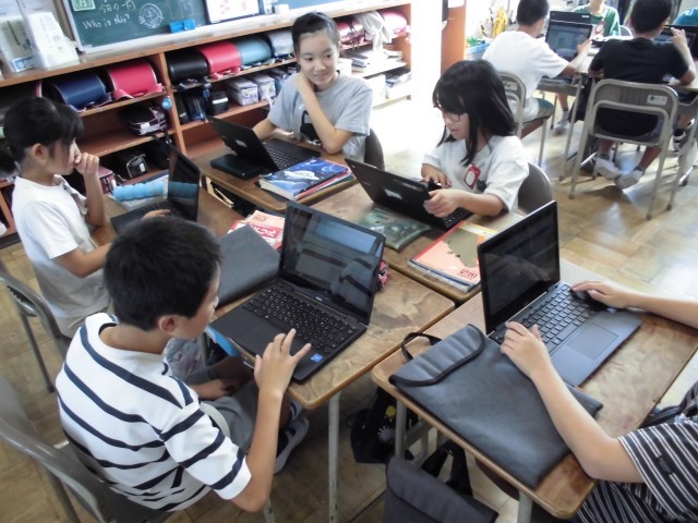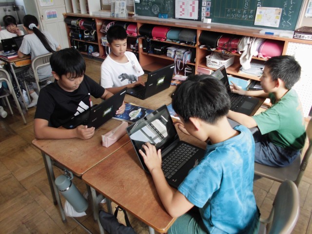 1組はホワイトボードを使って、2組はタブレットを使って進んで話し合いをすることができていました。