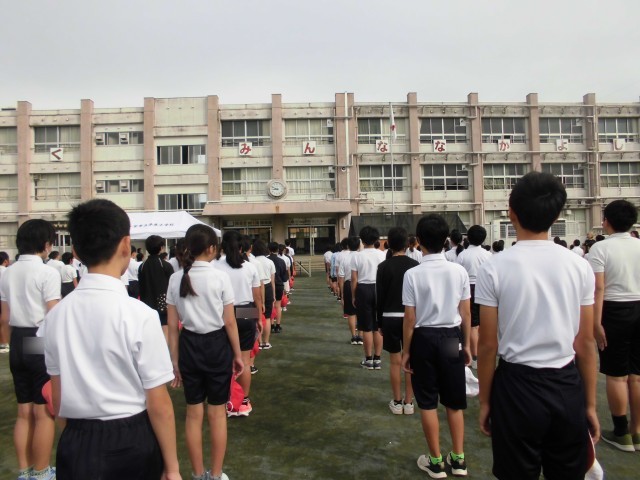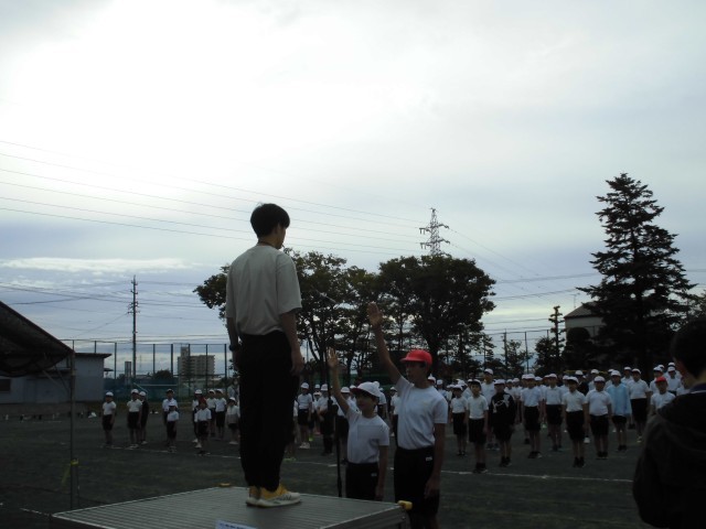 運動会に向けて、全校練習がありました。開会式と閉会式の通し練習をしました。6年生の子どもたちは最高学年らしく、他の学年のお手本となるような姿勢で練習に取り組むことができました。また、各クラスから応援団長が代表で前に出て、選手宣誓や旗の受け取りを行いました。