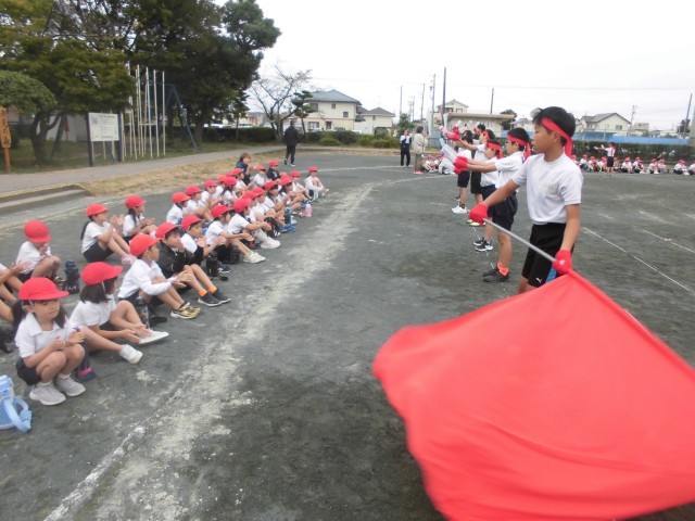 運動会の全体練習がありました。応援席からの入場の練習をしたり、開閉会式の流れを教えてもらったりしました。赤組と白組に分かれて応援の練習もしました。初めてでしたが、指示を聞いて一生懸命活動することができました。