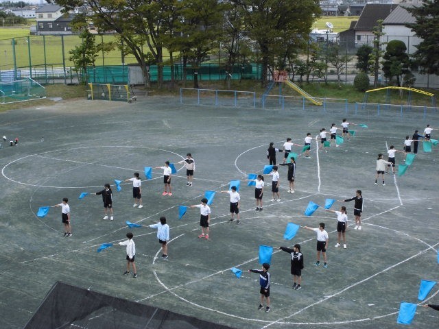 運動会前最後のリハーサルをしました。徒競走や棒引き、フラッグの演技を通して行いました。本番に向けて、それぞれの思いが表情に現れていました。