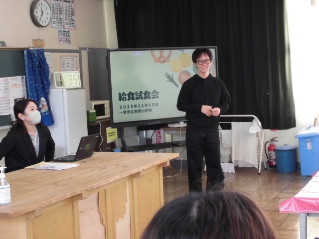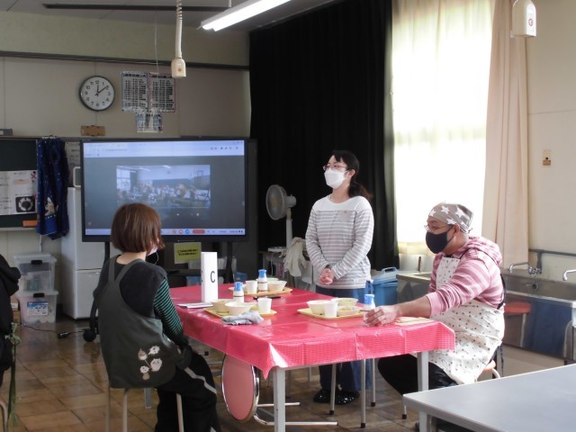 本日、家庭科室にて「PTA給食試食会」が行われました。学校栄養士(栄養教諭)の方を講師にお招きして、一宮市の給食の特徴のお話や、調理場の様子を紹介する動画の視聴をしました。その後、参加者の方々で「給食当番」をしていただき、配膳から食事、片付けまでを行いました。PTAのみなさんが子供の頃食べていた給食のメニューや当番活動の様子を思い出して「なつかしい」という声が上がるなど、和気あいあいと試食会を進めていただきました。各教室で児童の給食の様子もご参観いただき、有意義な時間となりました。