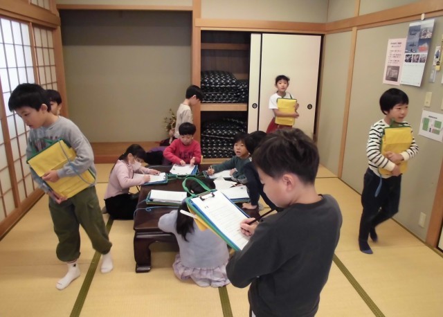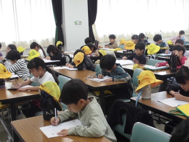 今日は、みんなが待ちに待った、まちたんけん2でした。歩いて行くときもワクワク、着いてからもワクワク、帰るときもワクワク、の半日でした。西成公民館に到着後、説明を受けながらしっかりメモを取ったら、お待ちかねの公民館内見学です。最初は和室。入った瞬間から「すごーい!」「おばあちゃんちにある!」など大喜び。プッシュホン式の電話を見たときに「昔の電話だよね!」と一言・・・今の世代の子どもたちにとっては、プッシュホンは昔の電話なんですね・・・。次は、大会議室でダンスサークルの練習に一緒に参加させてもらって、またもや大喜び!入る前から「楽しそうな音がするよ」「わあ、楽しみ!」と、ワクワクして入室。とっても楽しく踊って、ダンスの先生にもほめてもらって、にっこにこ。優しく教えていただき、ロシアのダンス「タタロチカ」を満喫しました。そして料理実習室の見学。遠くからでも教える側の手元が見える大きな鏡、天板を開けるとコンロやシンクが隠れて大きくなるテーブルなど、初めて見る仕掛けの施設にまたまた大喜び!最後は出張所としての場所も教えていただき、「ああ楽しかった!」「めっちゃおもしろかった!」と、大満足で学校に帰りました。