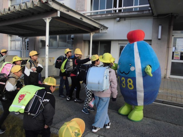 また、スペシャルゲストのいちみんも一緒にあいさつ運動に参加してくれて、赤見小に素敵なあいさつと笑顔が広がりました。